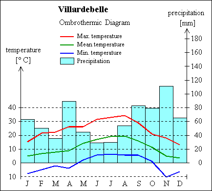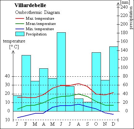 Lowest temperature : -7.4° C (January).