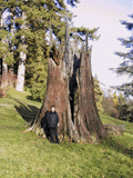 Stump of Sequoiadendron giganteum, grove of Pinus nigra, Sequoia sempervirens, Cedrus atlantica 'Glauca' |